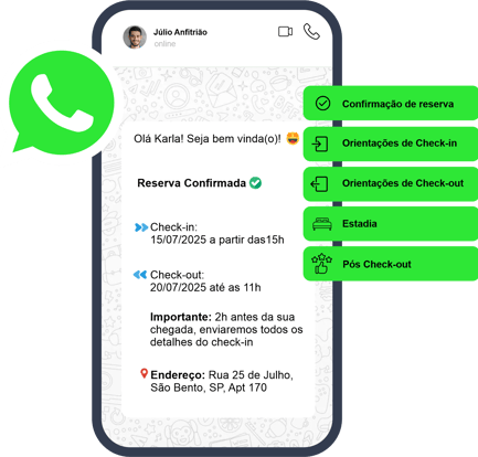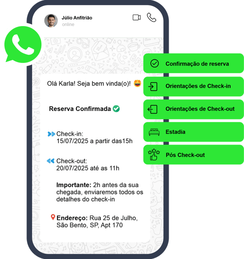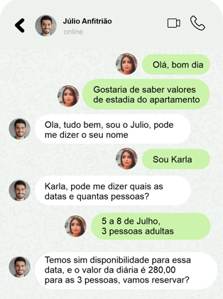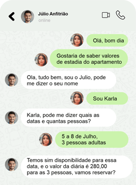 Com nossa IA para WhatsApp, seus hóspedes recebem respostas instantâneas, e seu calendário, mais reservas confirmadas.